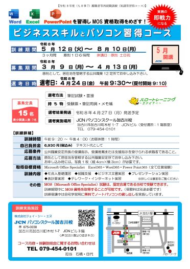 【訓練期間】令和7年9月25日(木) ~ 令和7年12月23日(火)